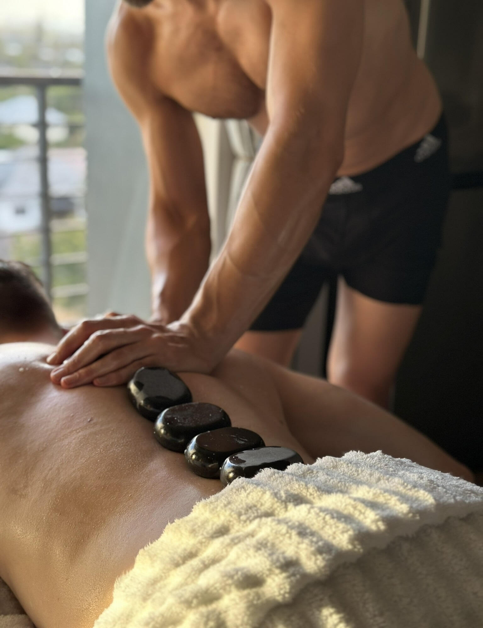 Hot stone massage involves the use of smooth, heated stones that are placed on specific points on the body. The heat from the stones helps to relax muscles and increase blood flow, which can help to alleviate tension, reduce stress, and promote overall relaxation.